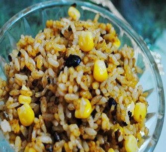 食材:冷米饭1碗、鸡蛋1个、老干妈牛肉豆豉酱2小勺、橄榄油适量、十三香适量、熟玉米粒适量