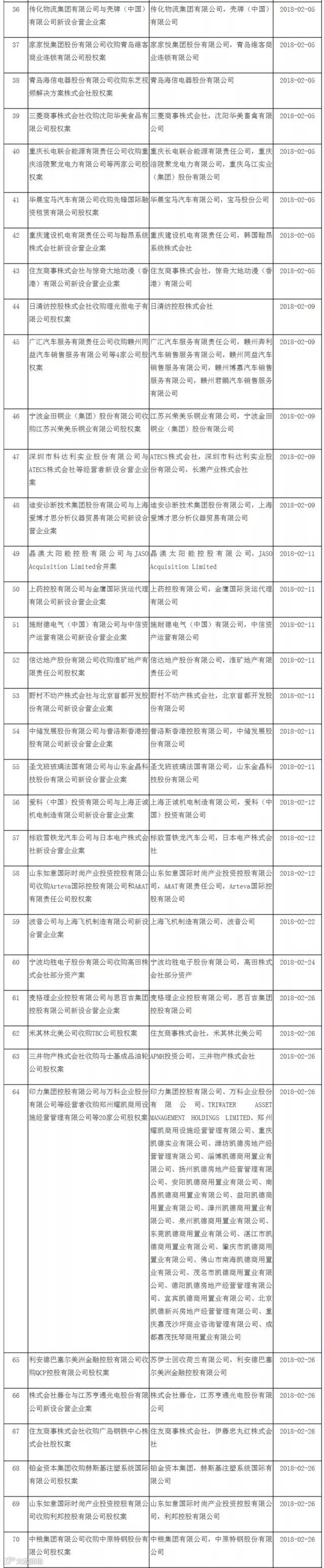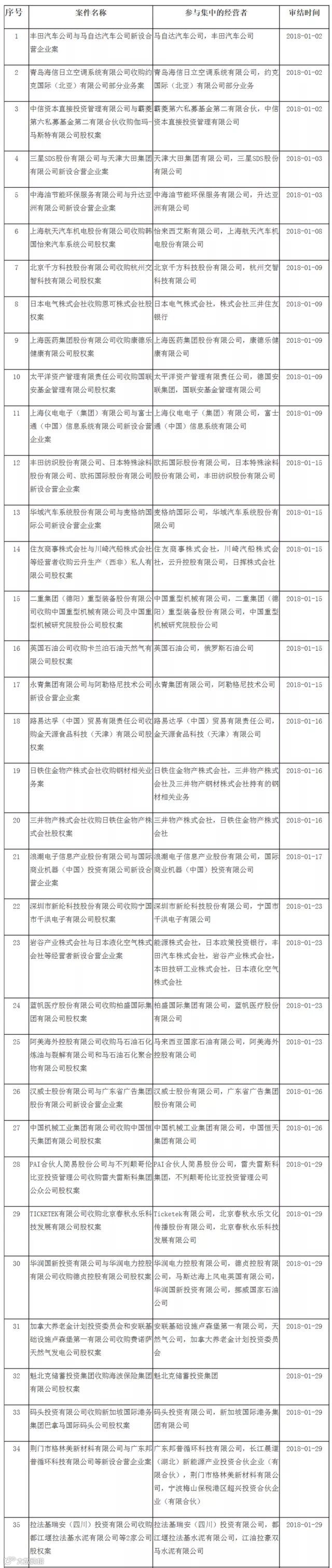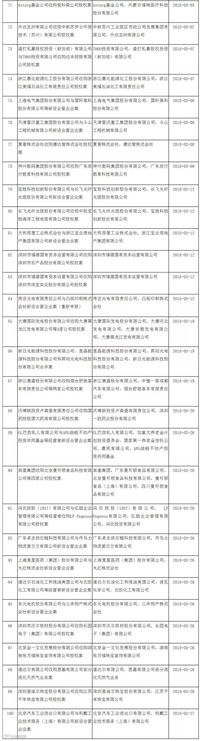 号外!商务部反垄断局公布了2018年第一季度无条件批准经营者集中案件列表,共计100起案件!商务微新闻带你一目了然!