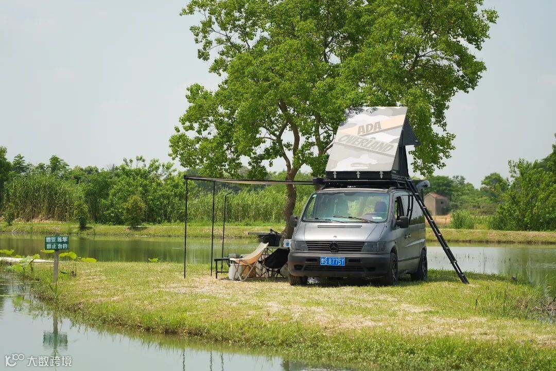 休闲露营区以塘为景,塘边营区草坪,凉风习习,烧烤钓鱼。