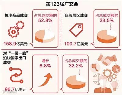 第123届广交会5月5日在广州闭幕。据统计,截至5月3日,这届广交会采购商到会203346人,同比增长5.3%,为5年来最高水平;同时这届广交会累计出口成交1891.97亿元人民币(折合300.8亿美元),同比增长3.1%,为4年来春交会最高水平。这届广交会实现了到会采购商与成交额“双增长”。