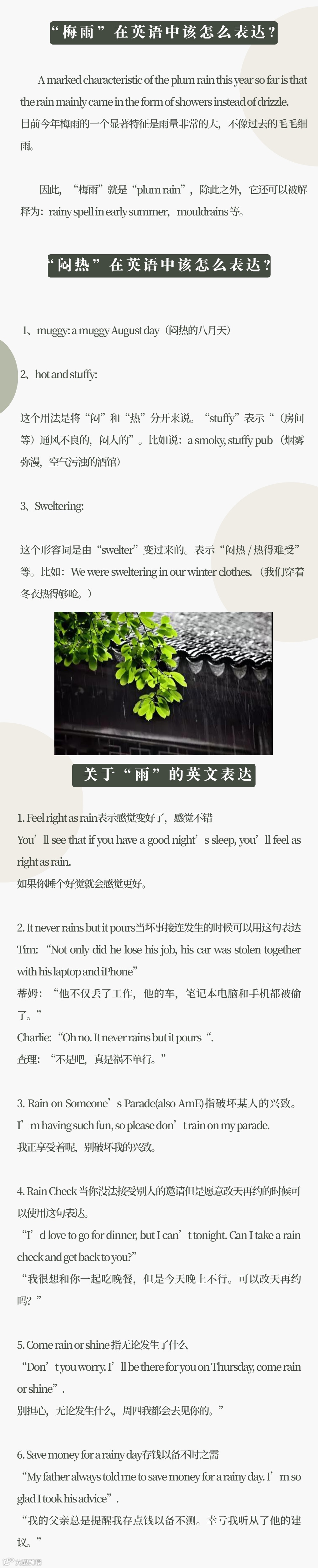 “plum rain”——梅雨季节来了,潮湿吗?
