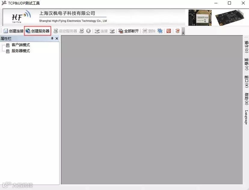 双击带有小飞机图标的【TCPUDPDbg.exe】程序,在打开的设置窗口点击【创建服务器】,如图