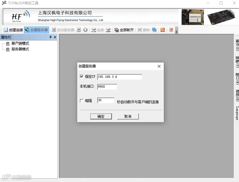 【制定IP】所填内容要与配置工具中【服务器地址】一致。