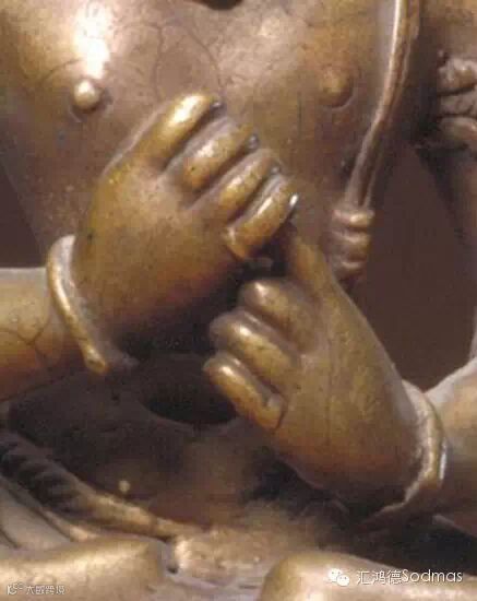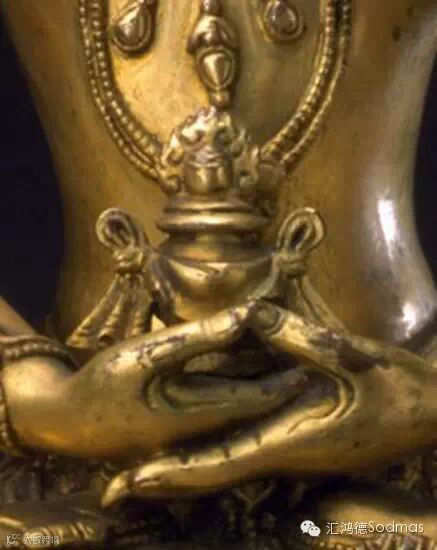 以两手分别作金刚拳(以四指握拇指于掌中,称为金刚拳),再以右拳握左手食指于胸前,据说此印相表示消灭无明烦恼,能得佛智慧。