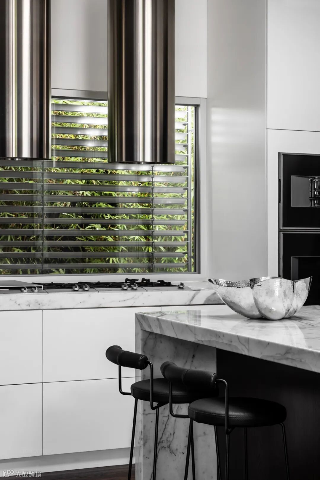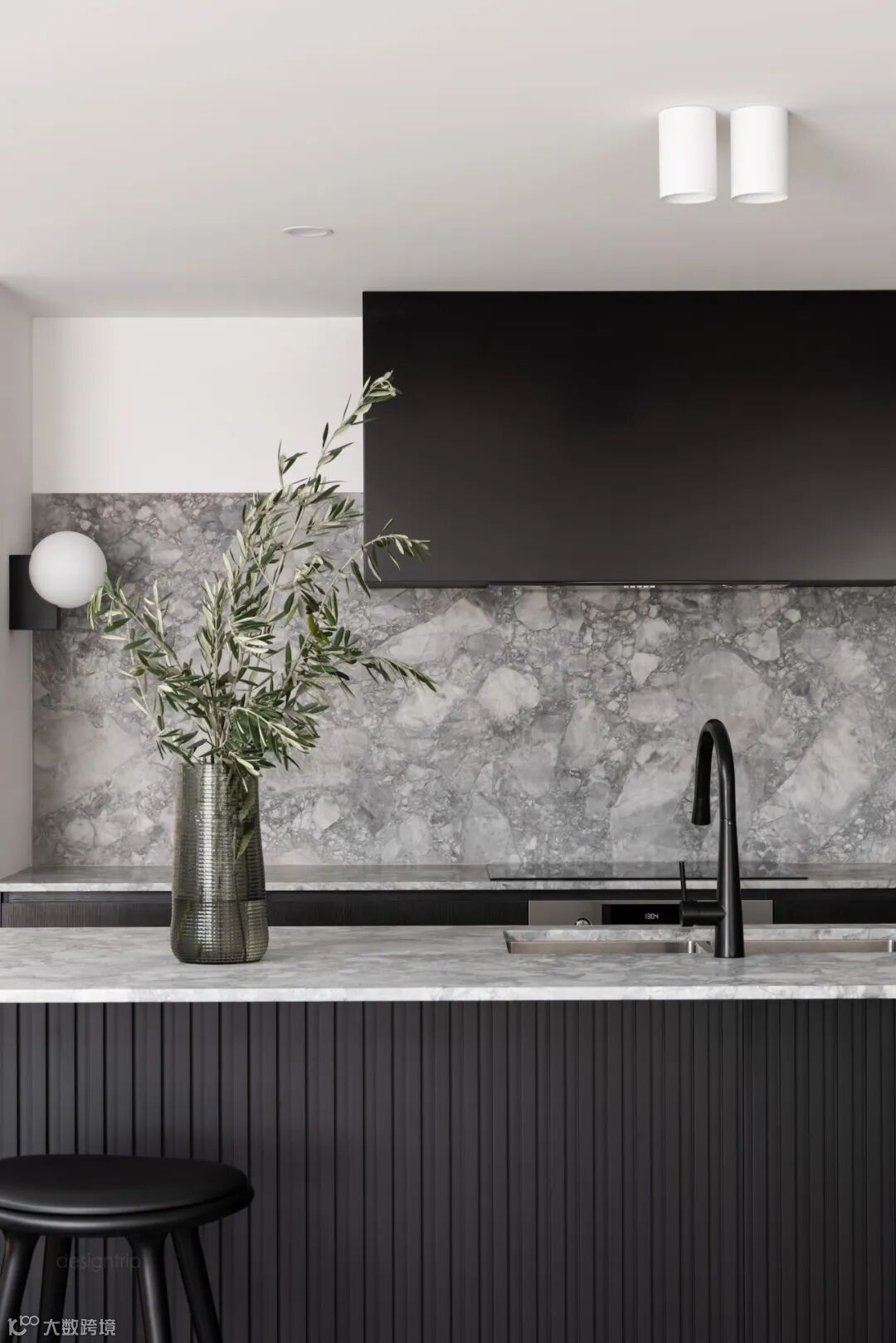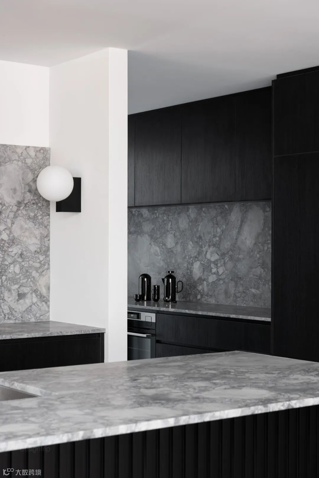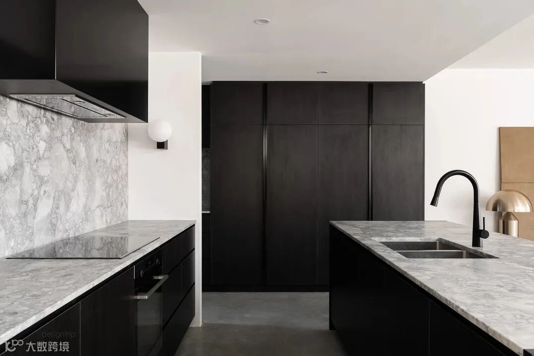 厨房使用了大面积的黑色,不同材料的结合恰到好处。
