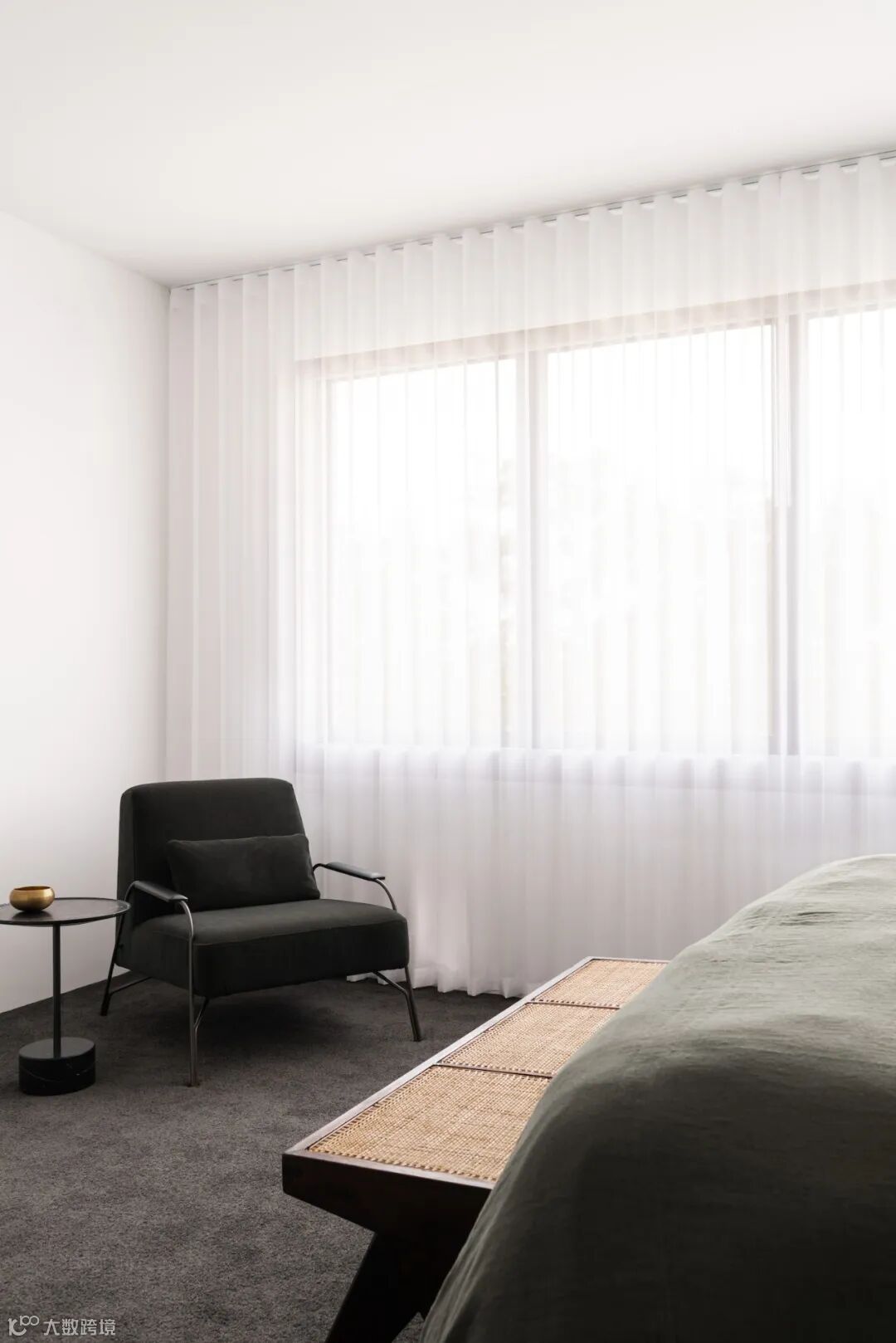 卧室内用羊毛、亚麻等材料营造出镇定、舒缓的氛围感。
