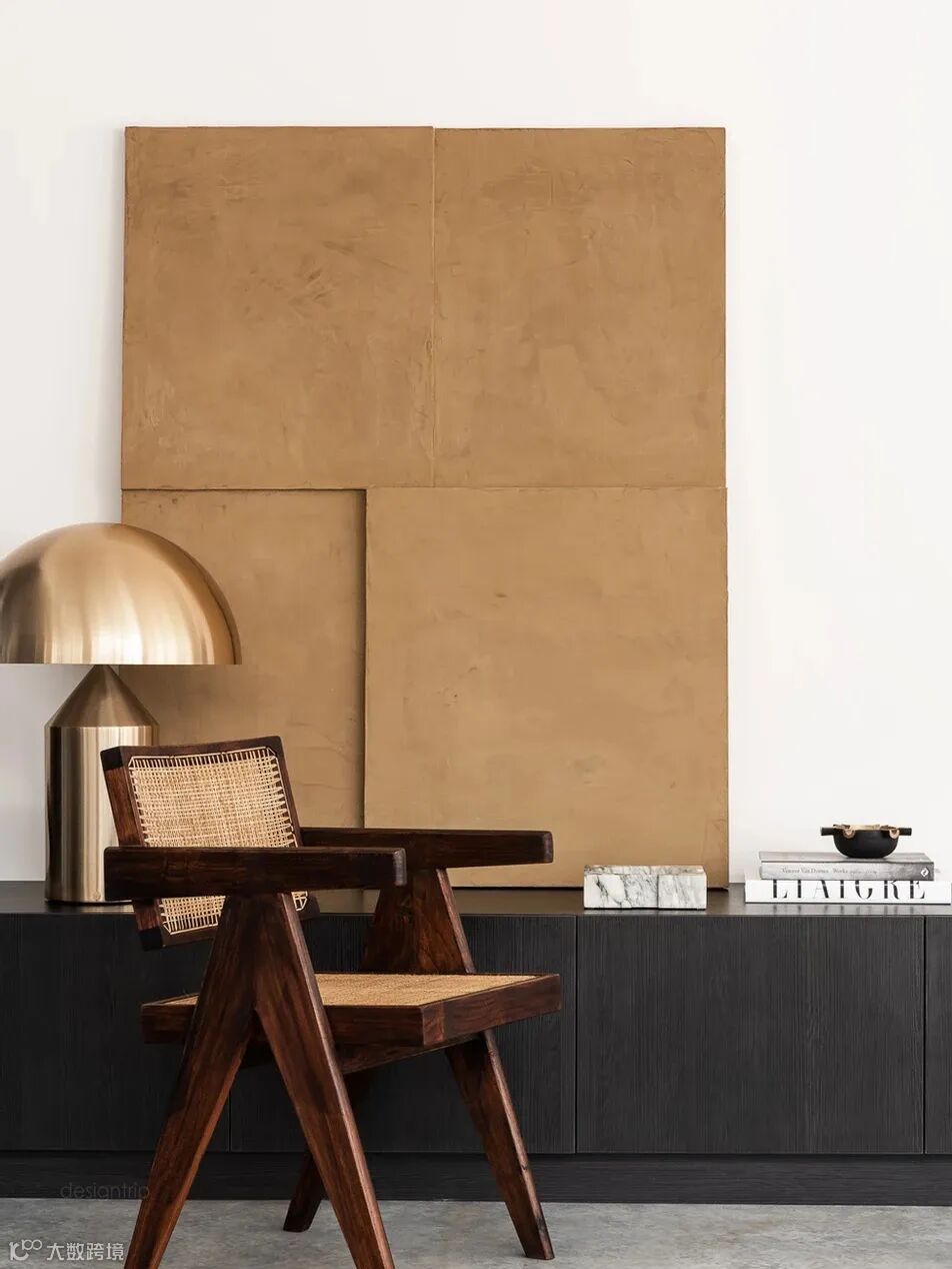 空间色彩的自然过渡,温暖大地色调,焦糖和森林绿色占主导地位。