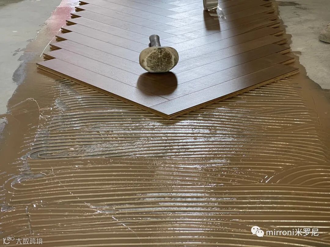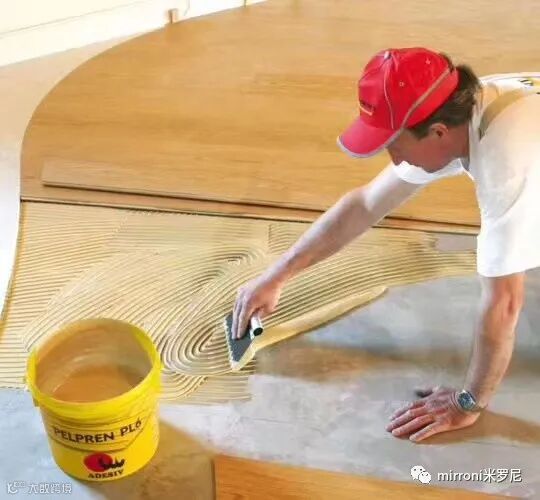 米罗尼家居地板铺装采用的是弹性胶满铺工艺。弹性胶满铺法是现在欧洲最成熟、最常用的一种铺装方法,也是地热木地板铺装的一次革新,它不仅具备五大绝佳优势:环保、稳定、节能、静音、持久,也是木地板安装的最佳解决方案。