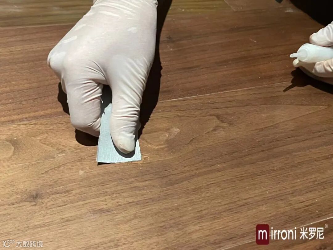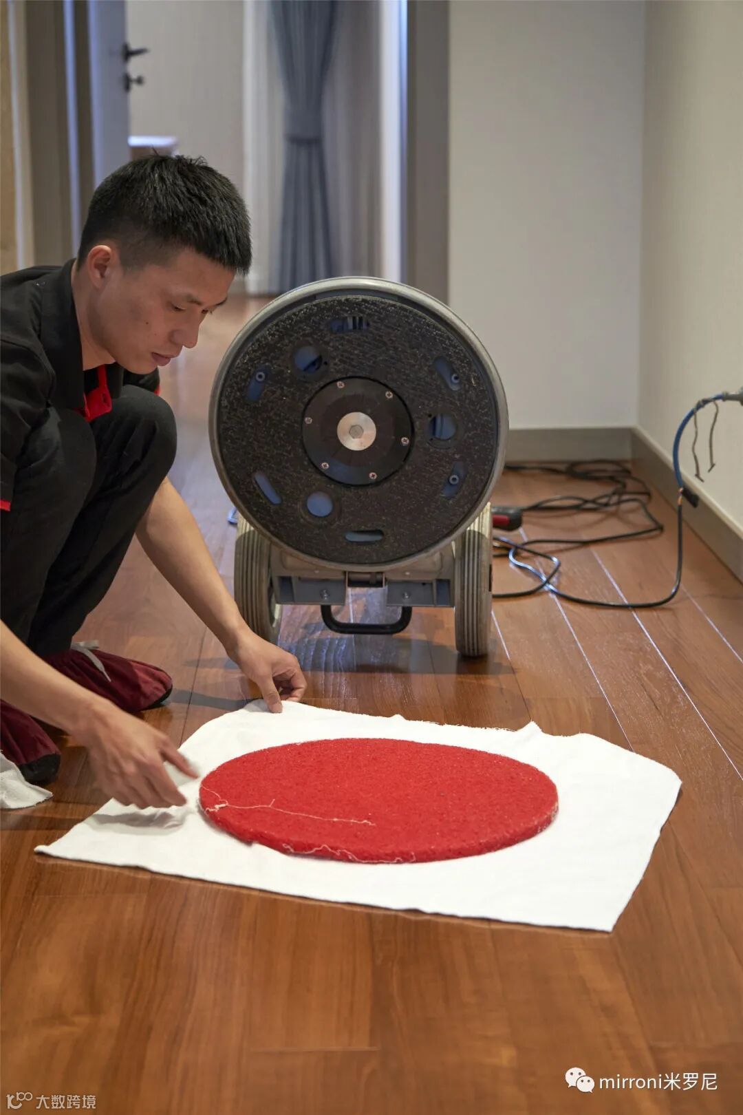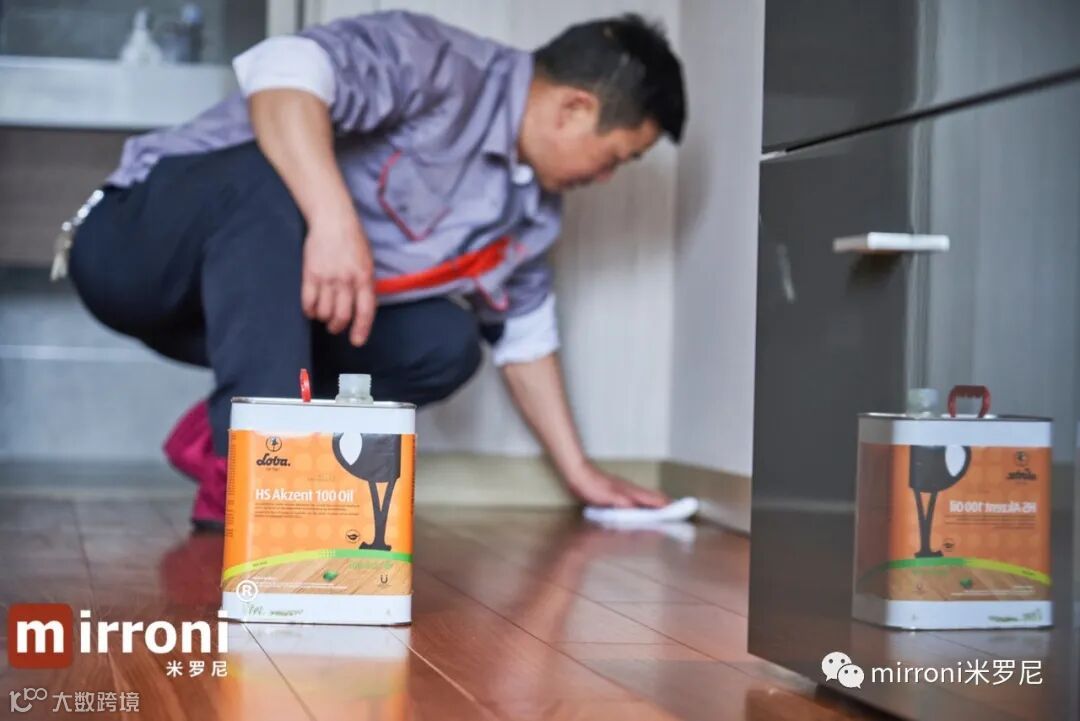 在木地板保养过程中,有很多设备做不到的地方,比如角落、家具下面,米罗尼家居保养师针对这些地方,都需要进行纯手工上油,仔仔细细一丝不苟,直至完全吸收。