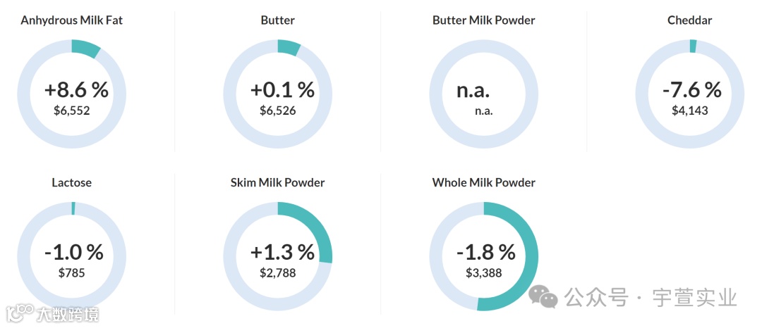 本次GDT价格指数上调幅度不大,主要品种的价格除全脂下降,脱脂、无水奶油均有不同幅度的上调,价格的波动让市场多了一些操作的空间。