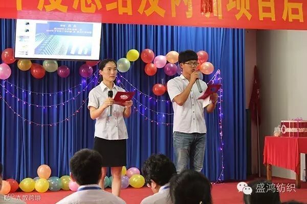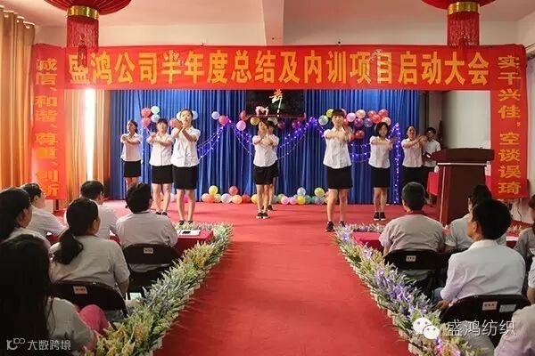 盛鸿纺织品有限公司半年度总结及内训项目启动大会于2016年7月16日在盛鸿会议大礼堂召开。公司全体员工参加了此次大会。