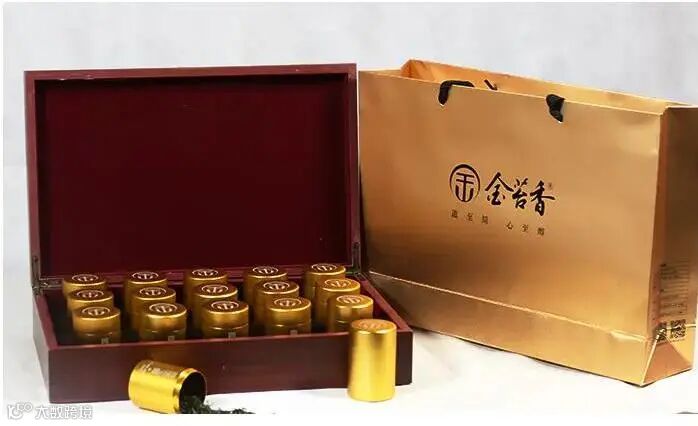 整个礼盒呈中式简约风,内置15罐小罐茶叶,罐体金黄,与木盒的颜色相互衬托,展现出与众不同的气质。