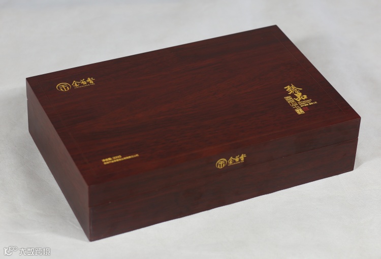 礼盒采用上等实木制作,红棕色的外盒配上烫金字体,厚重、尊贵,散发着古朴典雅之美。置于家中,高端大气;宴请宾客,尽显档次。