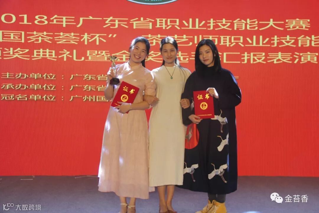 2018年广东“国茶荟杯”茶艺师职业技能大赛,由国家级高级茶艺师李柳青(中)指导的选手荣获银奖和铜奖