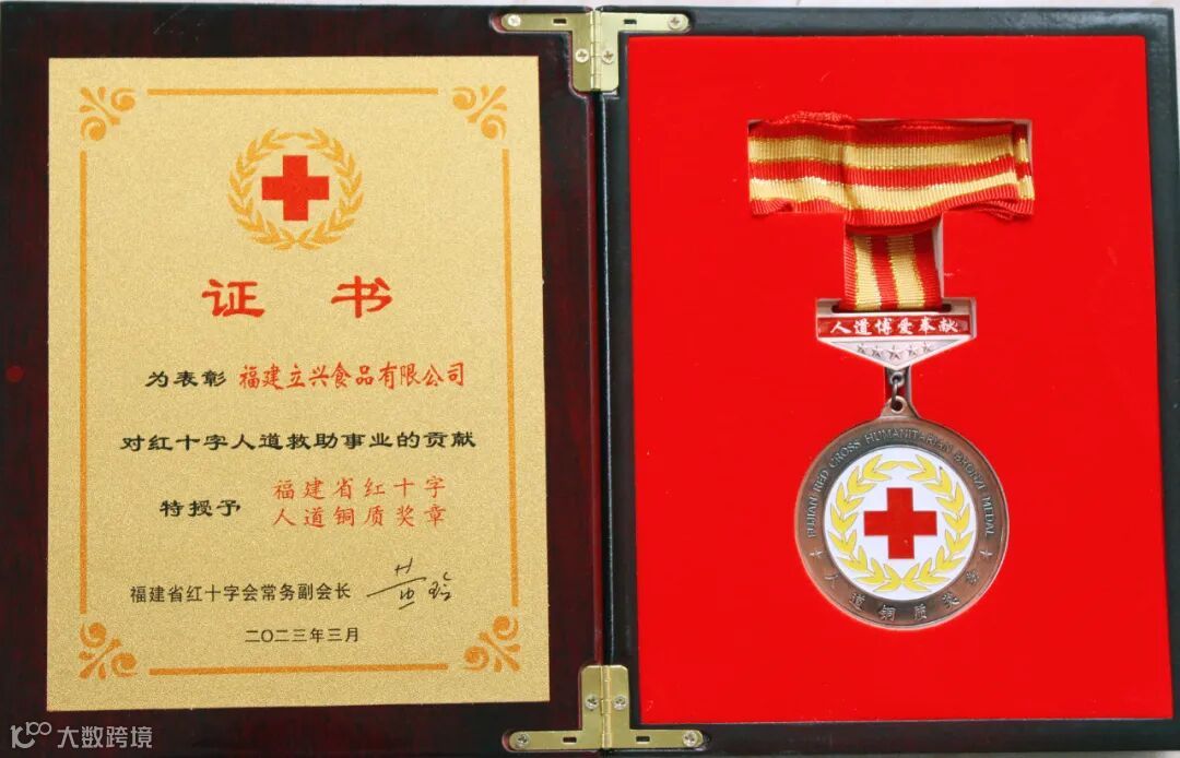 近日,福建省红十字会授予福建立兴食品股份有限公司“福建省红十字人道铜质奖章”,以表彰福建立兴在支持人道救助事业方面作出的积极贡献。