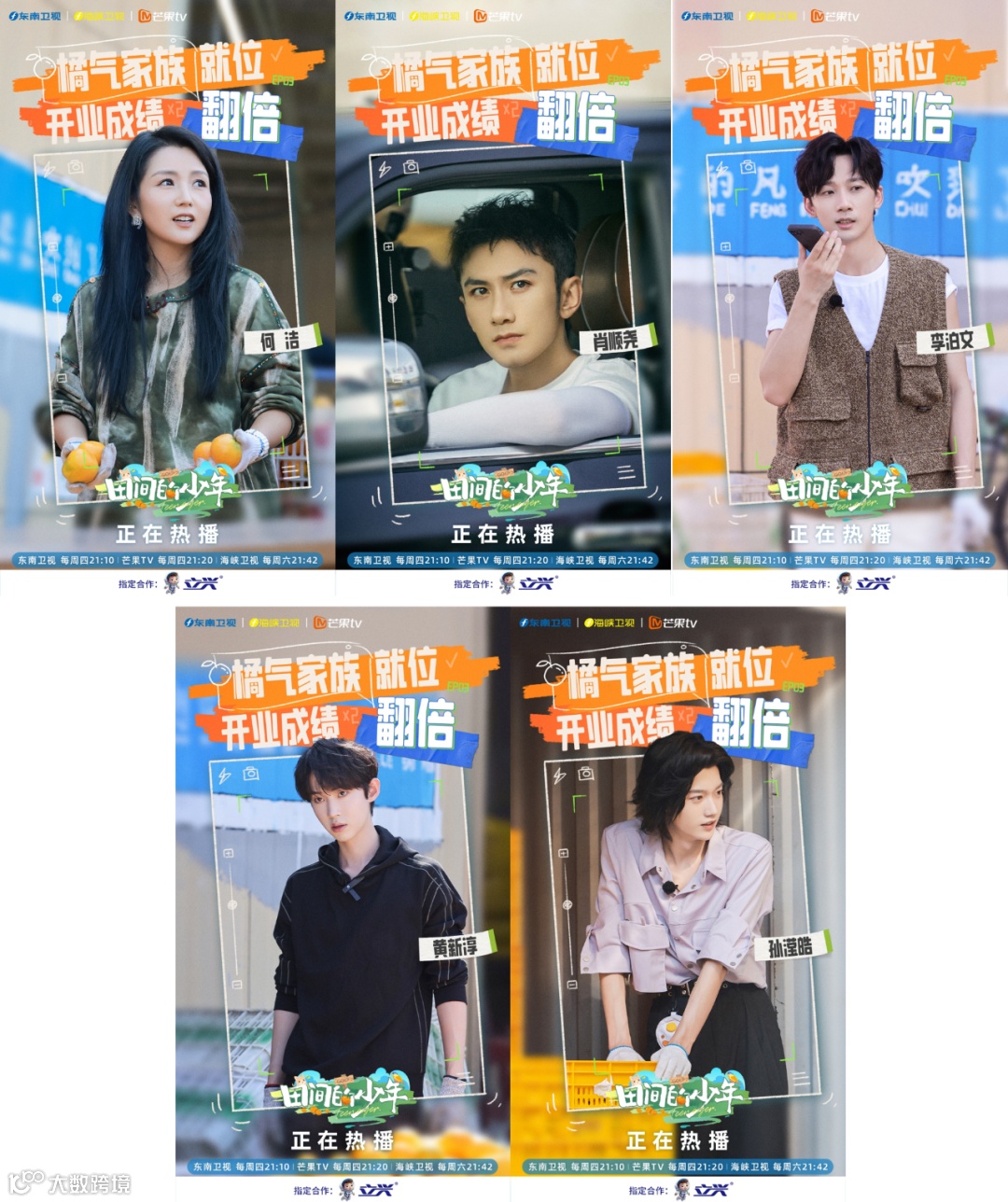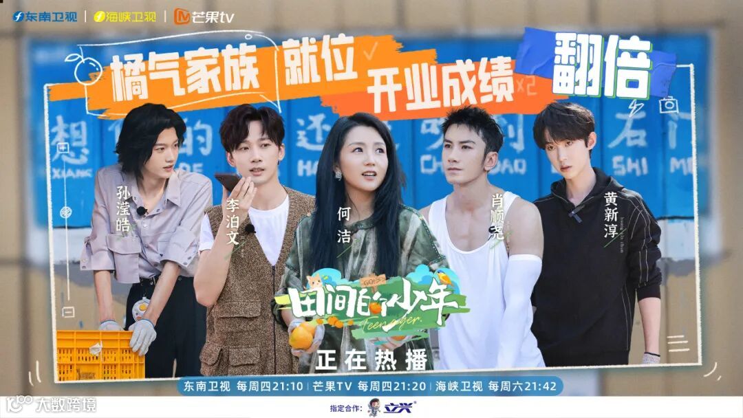 田园体验成长助农真人秀《田间的少年》每周四21:10东南卫视播出,21:20芒果TV 上线;每周六21:42海峡卫视播出。何洁、肖顺尧、李泊文、黄新淳、孙滢皓等五位节目嘉宾,将在湖南常德当地乡村开启为期8天的“橘民”生活,完成承包收购站,柑橘采摘、售卖等一系列任务,用自己的力量为当地果园农户增收赋能。