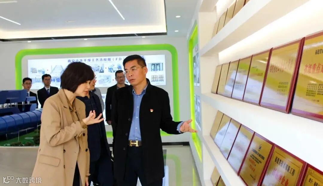 陈敏杰一行参观福建立兴电商运营团队的办公场地和党建活动室,详细了解企业发展情况、人才培养、党组织和党员队伍建设情况,并围绕电商公共服务体系建设、物流体系建设、网店运行、品牌塑造等情况进行了详细调研。