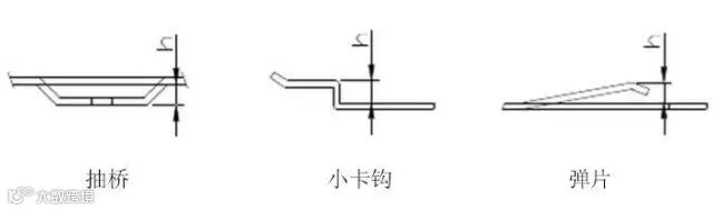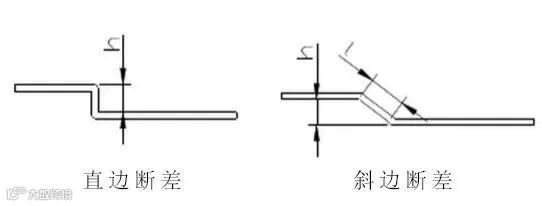 3 Z折:Z折又称为断差,根据成形角度分为直边断差和斜边断差,加工方式则依照断差高度而定, 直边断差当断差高度h小于3.5倍料厚时采用断差模或易模成形,大于3.5倍料厚时采用正常一正一反两折完成. 斜边断差当斜边长度l小于3.5倍料厚时采用断差模或易模成形,大于3.5倍料厚时采用正常一正一反两折完成