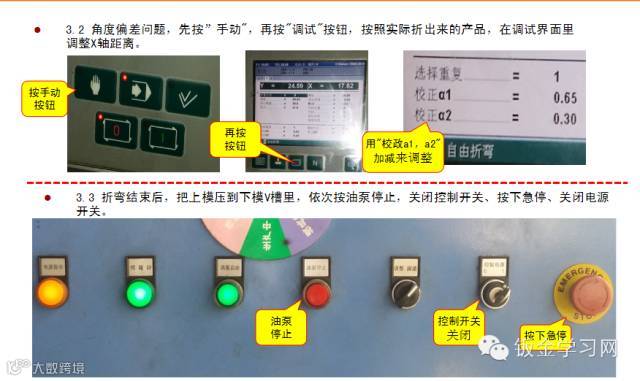 5、踩下脚踏开关开始折弯,折弯机与剪板机不同,可以随时松开,松开脚折弯机便停下,在踩继续下行。