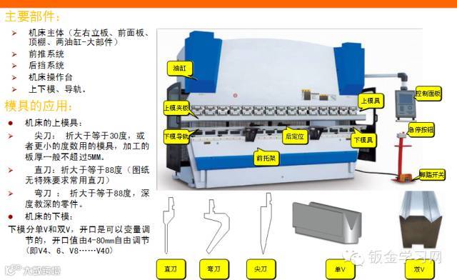 2、行程调节,折弯机使用必须要注意调节行程,在折弯前一定要试车。折弯机上模下行至最底部时必须保证有一个板厚的间隙。。否则会对模具和机器造成损坏。行程的调节也是有电动快速调整和手动胃调。