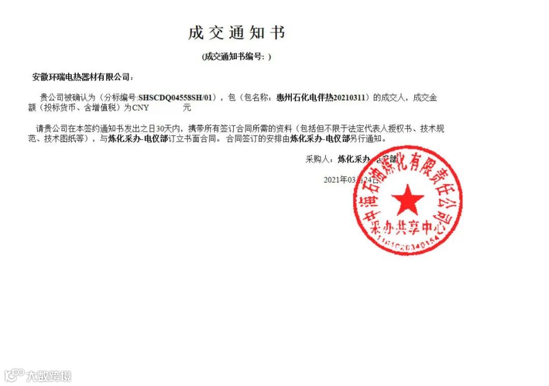 中海油成交通知书