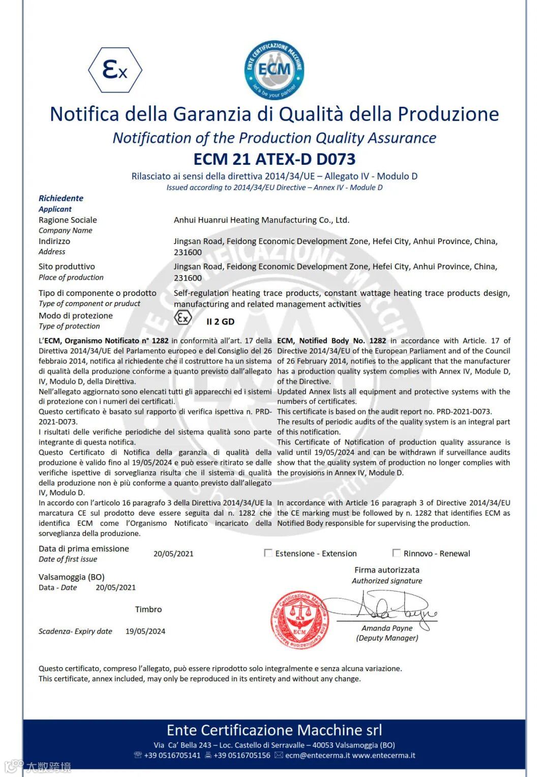 2021ATEX防爆体系证书