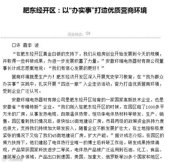 国际商报报道安徽环瑞