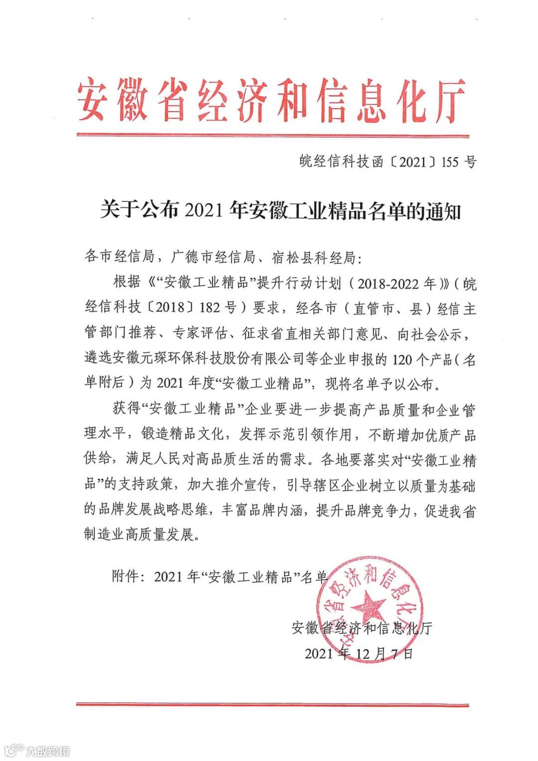 安徽工业精品名单公布