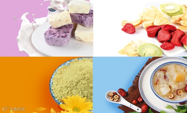 采用冻干技术,在真空中将冷冻食品中的水分直接从冰升华为气体,在去除水分的过程中可以保证柠檬、金桔、百香果、玉米等香味与营养成分不被破坏。