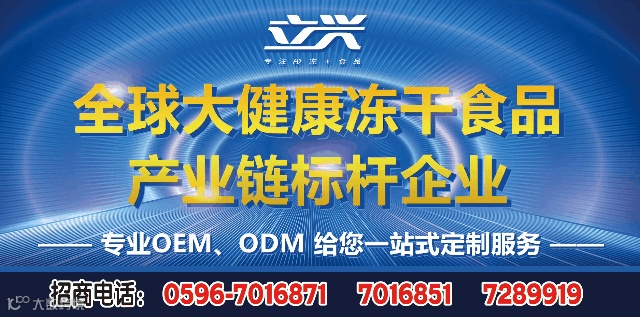 立兴食品自1997年创建以来,始终以“专注FD大健康冻干食品”为主题,本着“民以食为天,食以安为先”、“质量第一,信誉第一”的经营宗旨。公司主营冻干果蔬系列、冻干酸奶制品系列、冻干银耳汤系列、冻干速食汤系列、冻干速食面系列、冻干速食粥系列、冻干肉制品系列、冻干咖啡粉、冻干燕窝、速溶茶粉、茶浓缩液及其他植物提取物。产品畅销国内并出口欧盟、美国,日本,加拿大,俄罗斯,韩国,东南亚等发达国家,成为众多国内一线品牌大型销售商的产品供应商和一些大型企业的原材料供应商,产品不断推陈出新,引领消费新潮流,深受国内外广大消费者好评。并于2021年11月完成耗资近2个亿的四期冻干工程项目顺利投产,新增10个冻干仓及领先行业的智能化生产线,截至目前为止,共拥有29条冻干生产线,6300平方米的冻干炉设备,近几年更是在冻干食品领域取得优异成绩,并成为行业中的标杆企业!