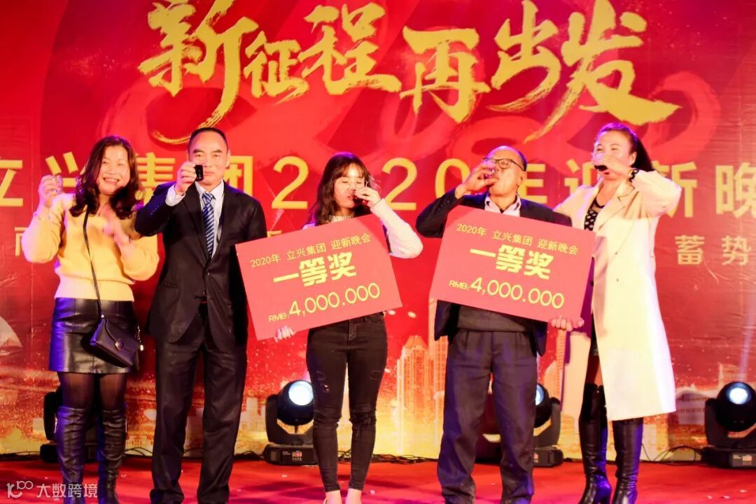 【由立兴集团董事长林解本先生抽取特等奖1名(8888元/人),董事长夫人一起举杯同庆】