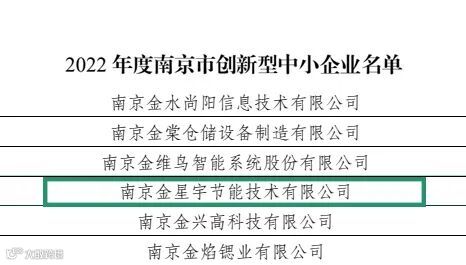 创新型中小企业是企业创新能力的“认证”标志。2022年,南京金星宇节能技术有限公司成功入选南京市“创新型中小企业”名单,是对公司创新能力和研发技术水平的充分肯定。