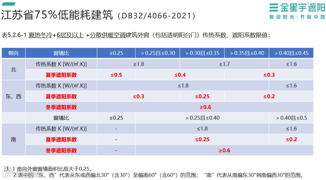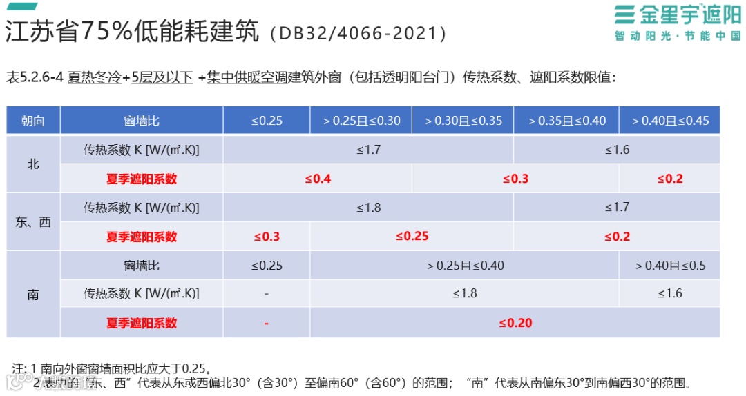 表5.2.6-3中:夏热冬冷地区6层及以上集中供暖空调建筑外窗(包括透明阳台门)传热系数、遮阳系数限值,这类建筑在江苏省比重相对小,是相对差异化的产品的建筑。