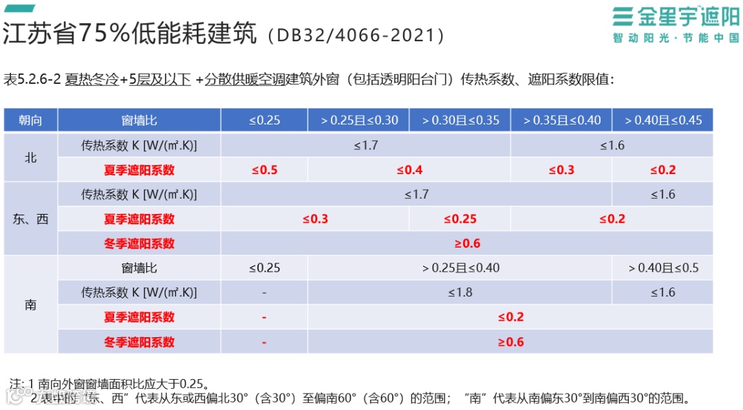 表5.2.6-2中:夏热冬冷地区5层及以下分散供暖空调建筑外窗(包括透明阳台门)传热系数、遮阳系数限值,这类建筑在江苏省比重不大,但是一种重要补充,不应忽视。
