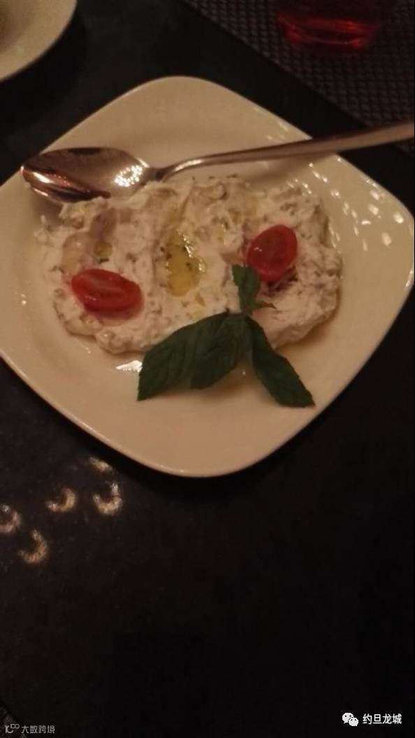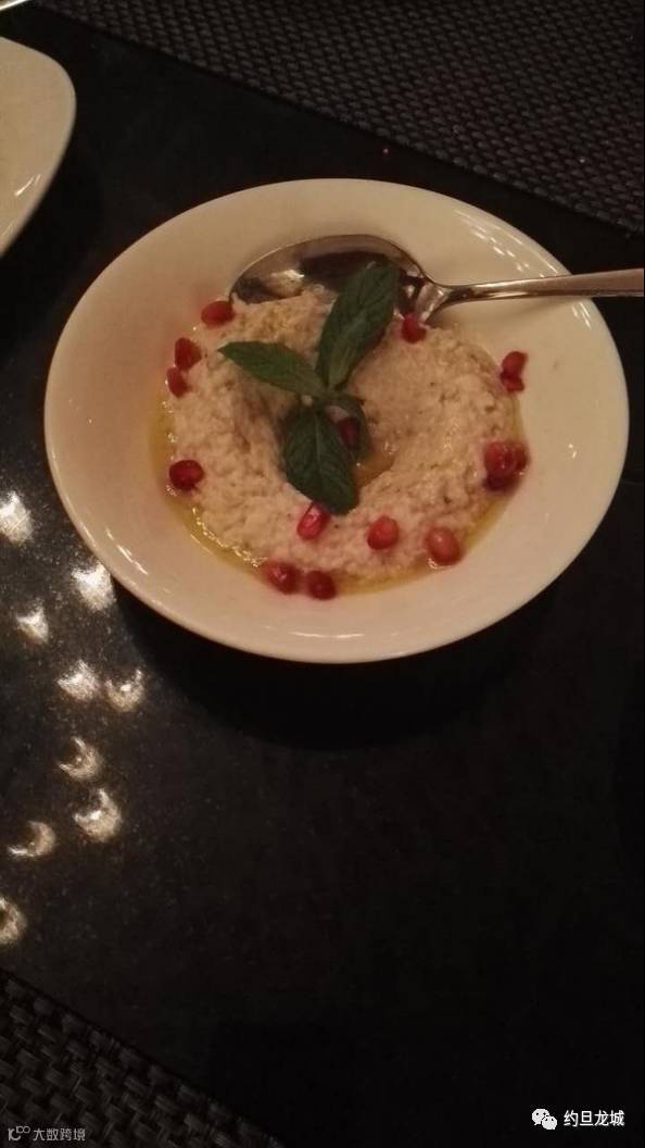 这叫木塔白拉。茄子,面粉,蒜混合在一起,配上红色的石榴。