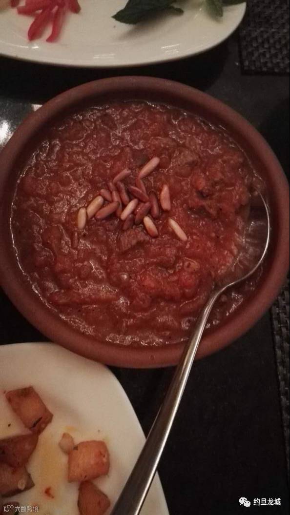 这个叫本杜拉,西红柿碾碎和肉末混合做的酱。放在饼里面,口感特别好。
