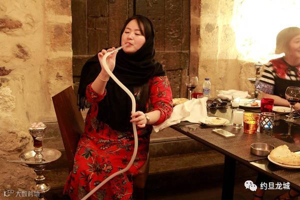 约旦水烟,饭后休闲佳品。和土耳其水烟一样,可以选择各种口味的烟稿,然后用炭火加热。