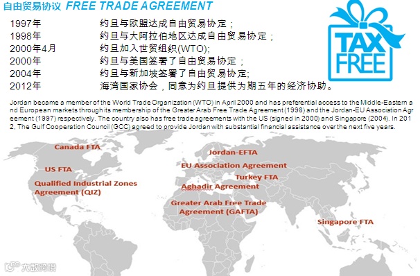 约旦与世界10多个国家或地区签定55项双边自由贸易区0关税协议