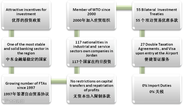 约旦是中东和北非地区的重要集散地,辐射3.25亿消费人群,世界6%人口。约旦与中近东国家贸易密切,产品进入约旦就等于进入中近东地区。