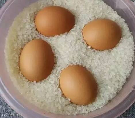 将鸡蛋放到大米中,能有效地保证鸡蛋的新鲜度,存放6-8个月,鸡蛋都是完好的。