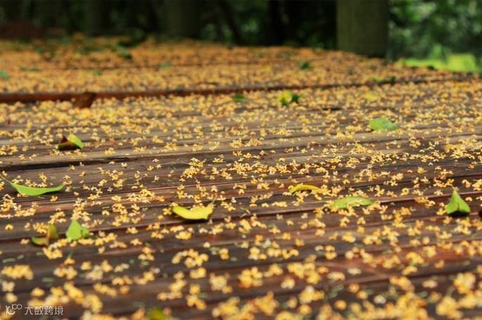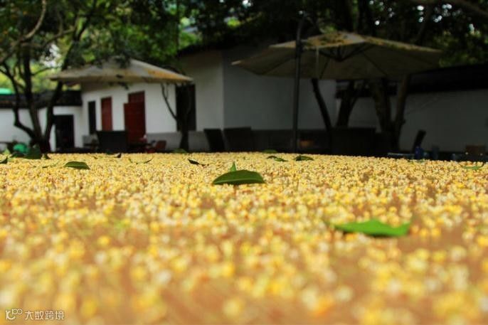 若遇上一场秋雨,桂花被雨水打落,随风飘下,撑伞走过,好一场桂花雨。