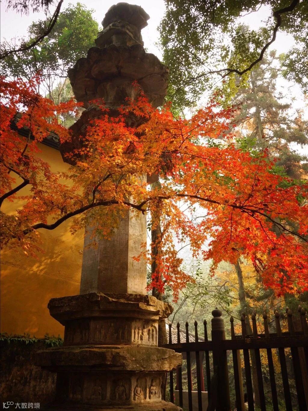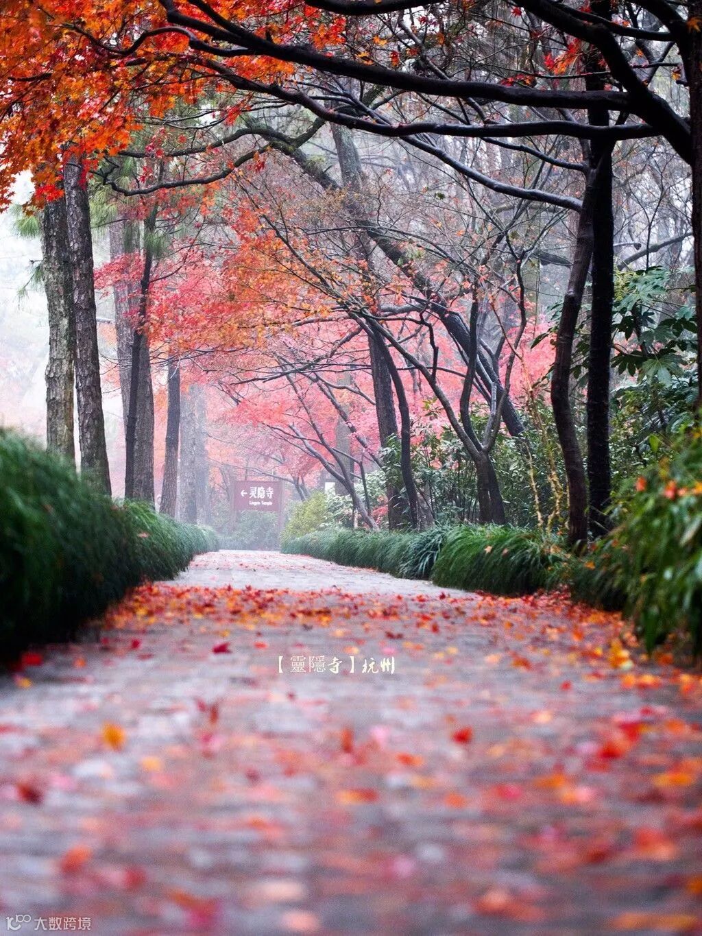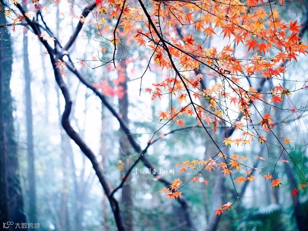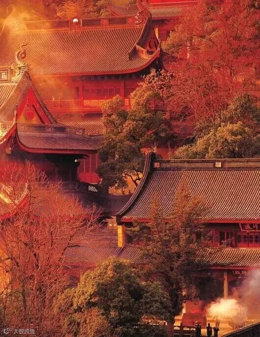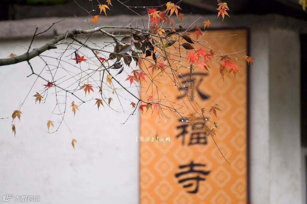 当灵隐寺遇上秋天,满山绿树换上了新装,红黄绿颜色交相呼应,恍如佛祖打翻了的调色盘。