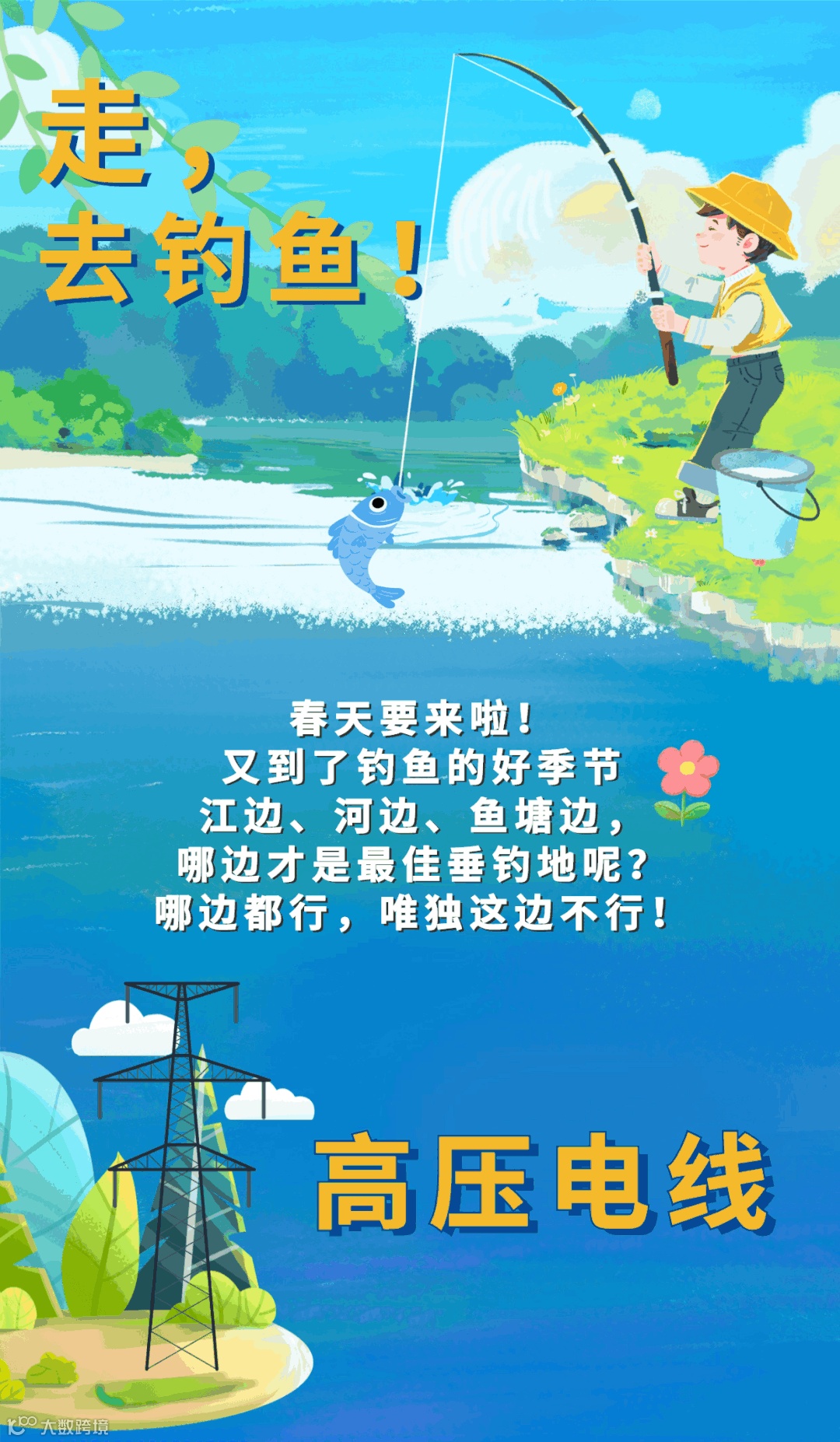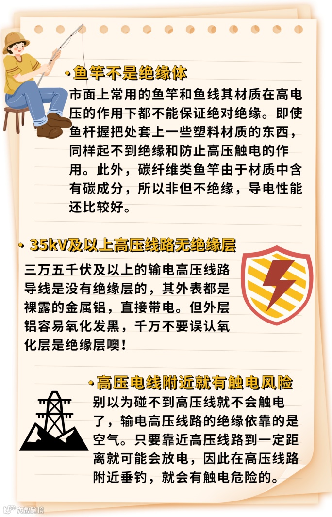 垂钓点和输电线路要保持安全距离,