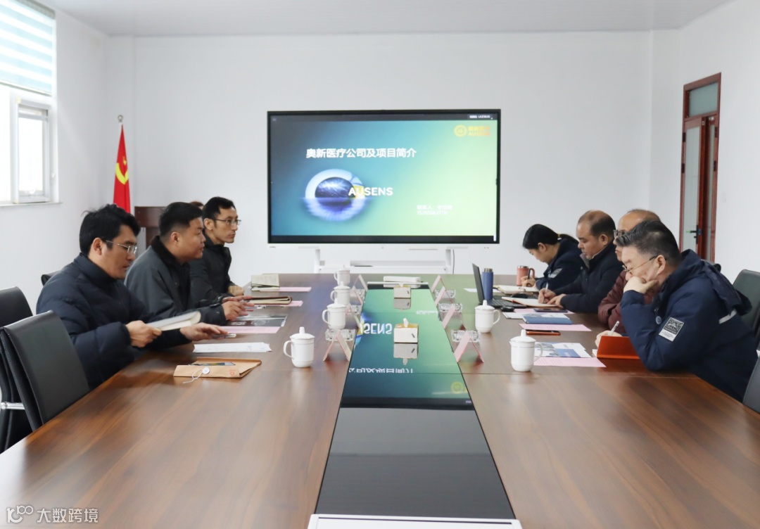 3 月 5 日,国健(青岛)健康科技有限公司总经理张国珠、产业合作总监吴磊,青岛高新区投资促进部医疗医药产业三中心主任姜源、姜蓓蓓一行莅临山东奥新医疗科技有限公司参观交流。奥新医疗董事长顾军军、执行董事高沪光、总经理李培勇陪同参观并座谈交流。