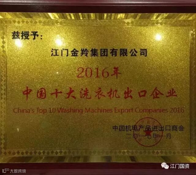 自中国机电产品进出口商会获悉:金羚集团荣获“中国十大洗衣机出口企业”殊荣。