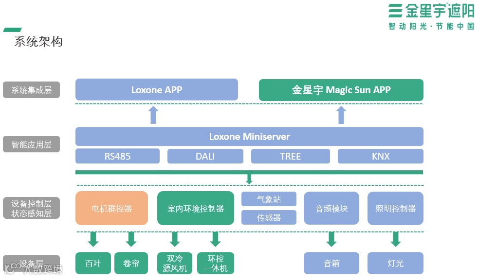 值得一提的是:目前市面上的主要产品,因各企业或品牌为避免其核心技术外泄,基本是各自研发、生产各自的智能控制设备及软件,少见有效且集成化的智能控制设备及软件,带来实际推广和使用的受限。但上述的智能控制设备和软件可以兼容建筑除遮阳以外的设备和设施!