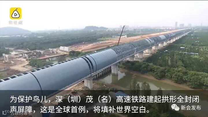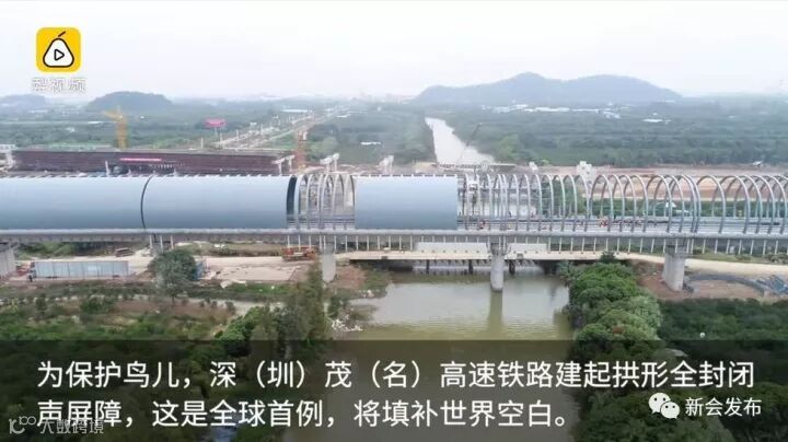 由于深茂铁路途经“小鸟天堂”景区附近,为有效保护“小鸟天堂”一带的生态环境,施工中采用全球首例高速铁路拱形全封闭声屏障,该声屏障全长2036.35米,施工工期为60天,主要由拱形钢构架和金属吸、隔声板及ECC混凝土吸声板组成,在全球高速铁路建设中属首创。