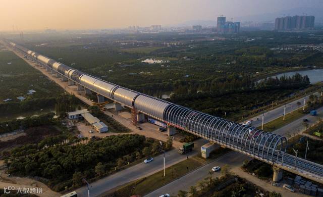 深茂铁路位于广东省西南沿海地区,东起深圳,西至茂名,北连广州,途经东莞、中山、江门、阳江等市,是亚洲首个高速铁路拱形全封闭声屏障项目。