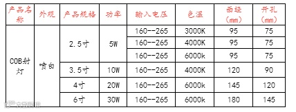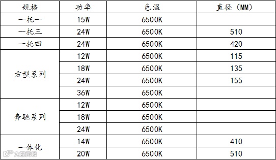 色温规格:三种色温选择暖白光3000K 中性光4000K 正光6000K