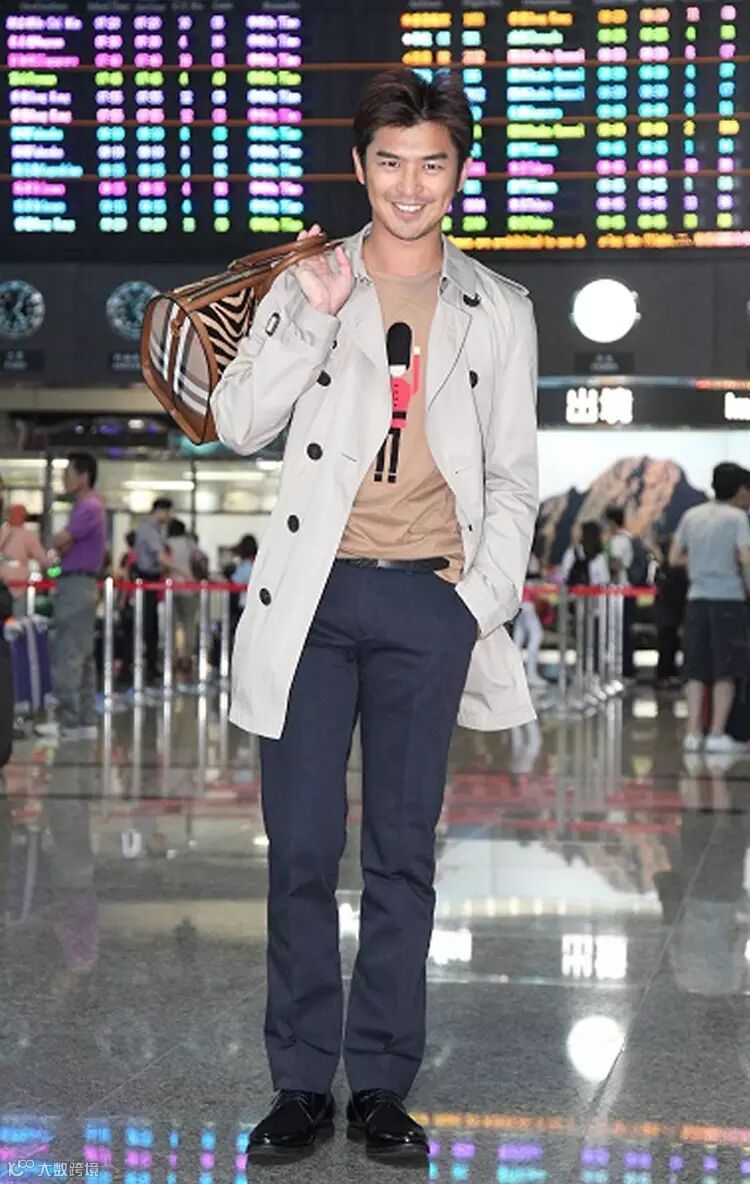 这位清爽少年——陈柏霖巧妙地将卡通T恤藏在中长度的风衣里,成熟中透露出大男孩的调皮,整体看上去活泼又利落。